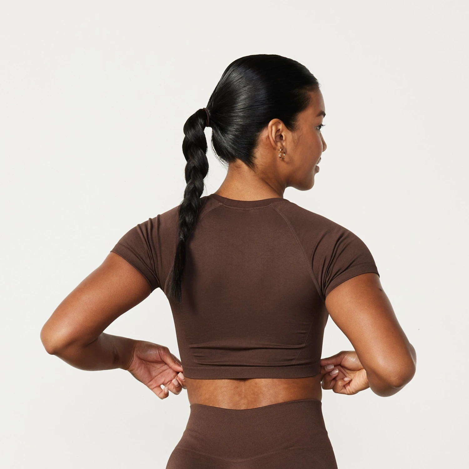 This brand new style of cropped cap sleeve t-shirt features raised contour lines at the front and back with raglan style sleeves. The ultra flattering cropped cut has a deep ribbed waistband to sculpt the body, finished with a minimal VQ logo.