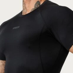 This brand new style of cropped cap sleeve t-shirt features raised contour lines at the front and back with raglan style sleeves. The ultra flattering cropped cut has a deep ribbed waistband to sculpt the body, finished with a minimal VQ logo.