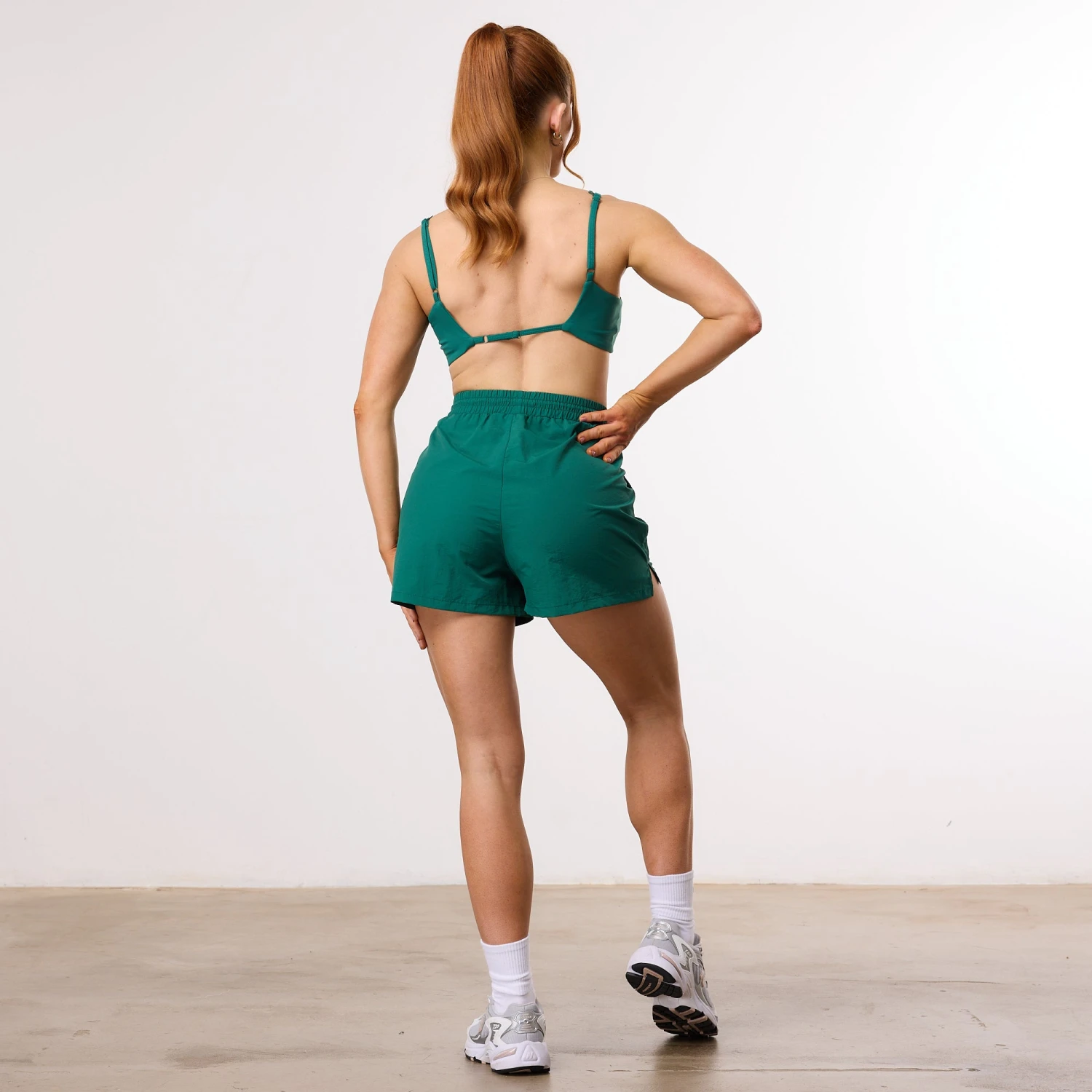 Discover the new Enhance Track Shorts: designed for fitness and lifestyle a comfortable loose fit, side pockets and side splits at the hem for enhanced mobility. These shorts have an elastic bungee drawcord at the waistband and our cracked screen print logo.