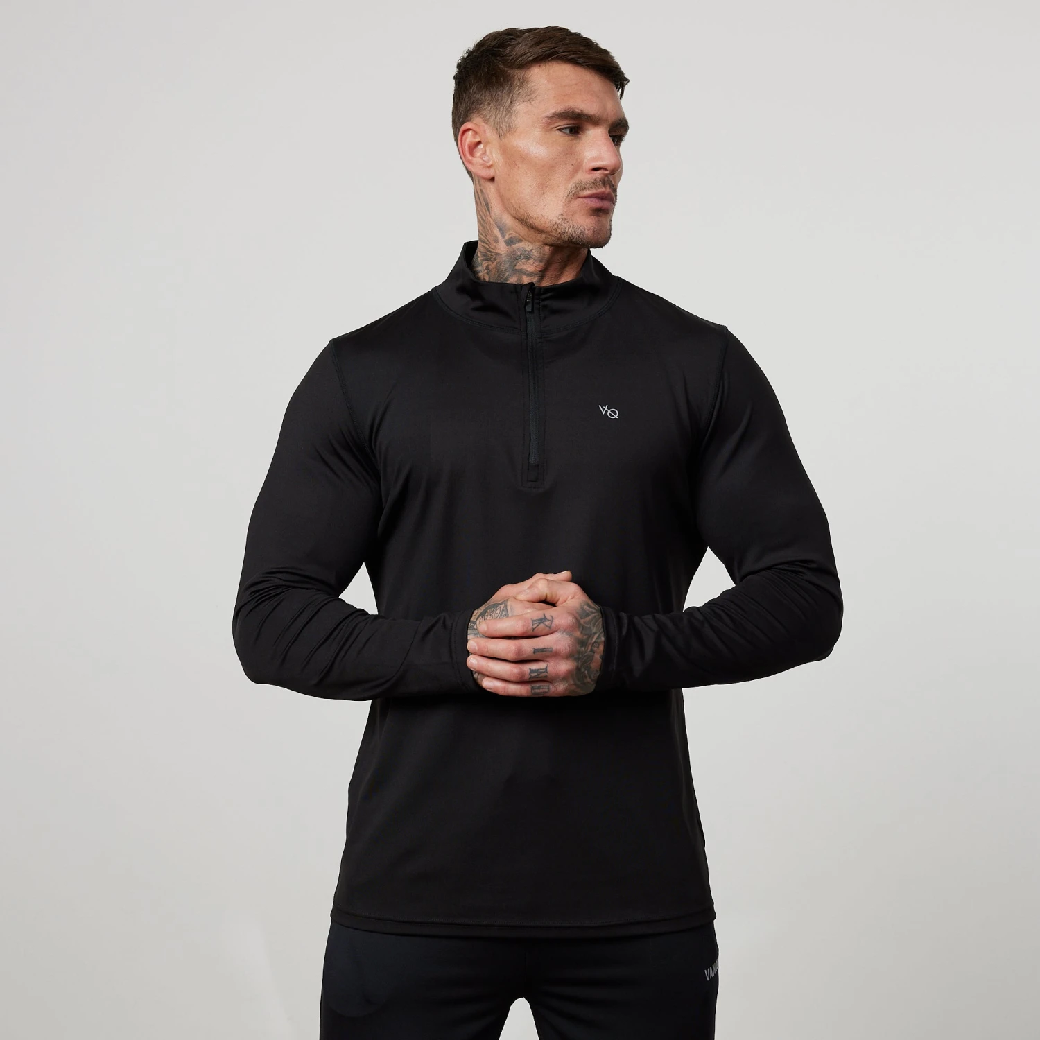 This brand new style of performance 1/4 zip comes in a slim fit, featuring a high collar with quarter length zip and zip guard, finished with a straight hem and tonal branding.