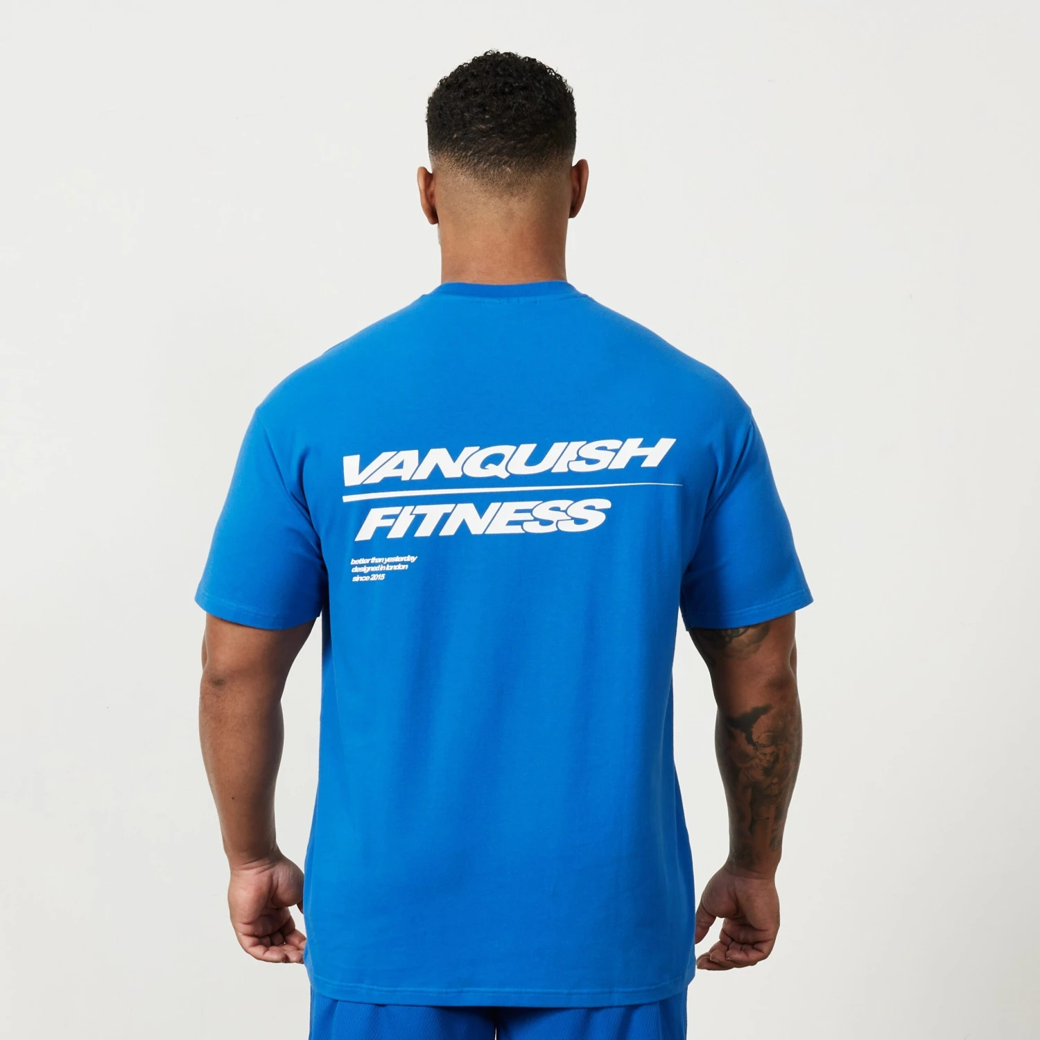 This oversized t-shirt is made from a soft cotton blend fabric with a deep ribbed collar, straight hem and forward shoulder seam. The back features a bold graphic style of branding with a smaller version on the front.