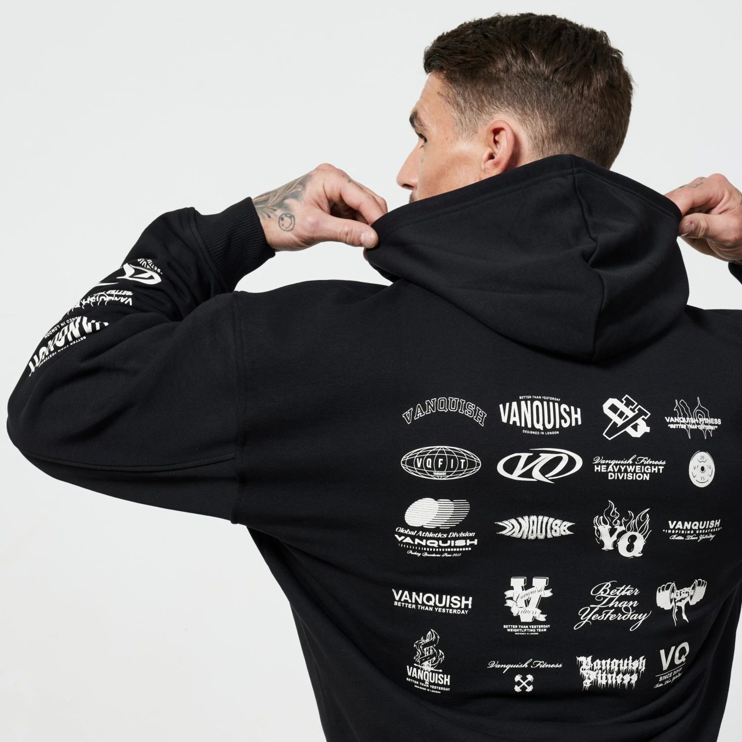 This hoodie comes in an oversized fit in a soft, loopback cotton blend fabric and kangaroo pocket on the front. The front features simple branding and text print with our bold, multi logo print on the back and additional branding on both sleeves.