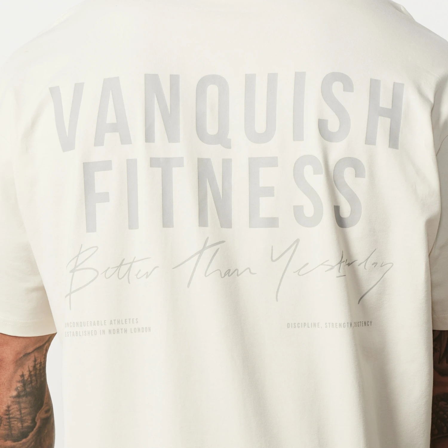 Our Consistency t-shirt features tonal text screen print on the back with a smaller version on the chest.